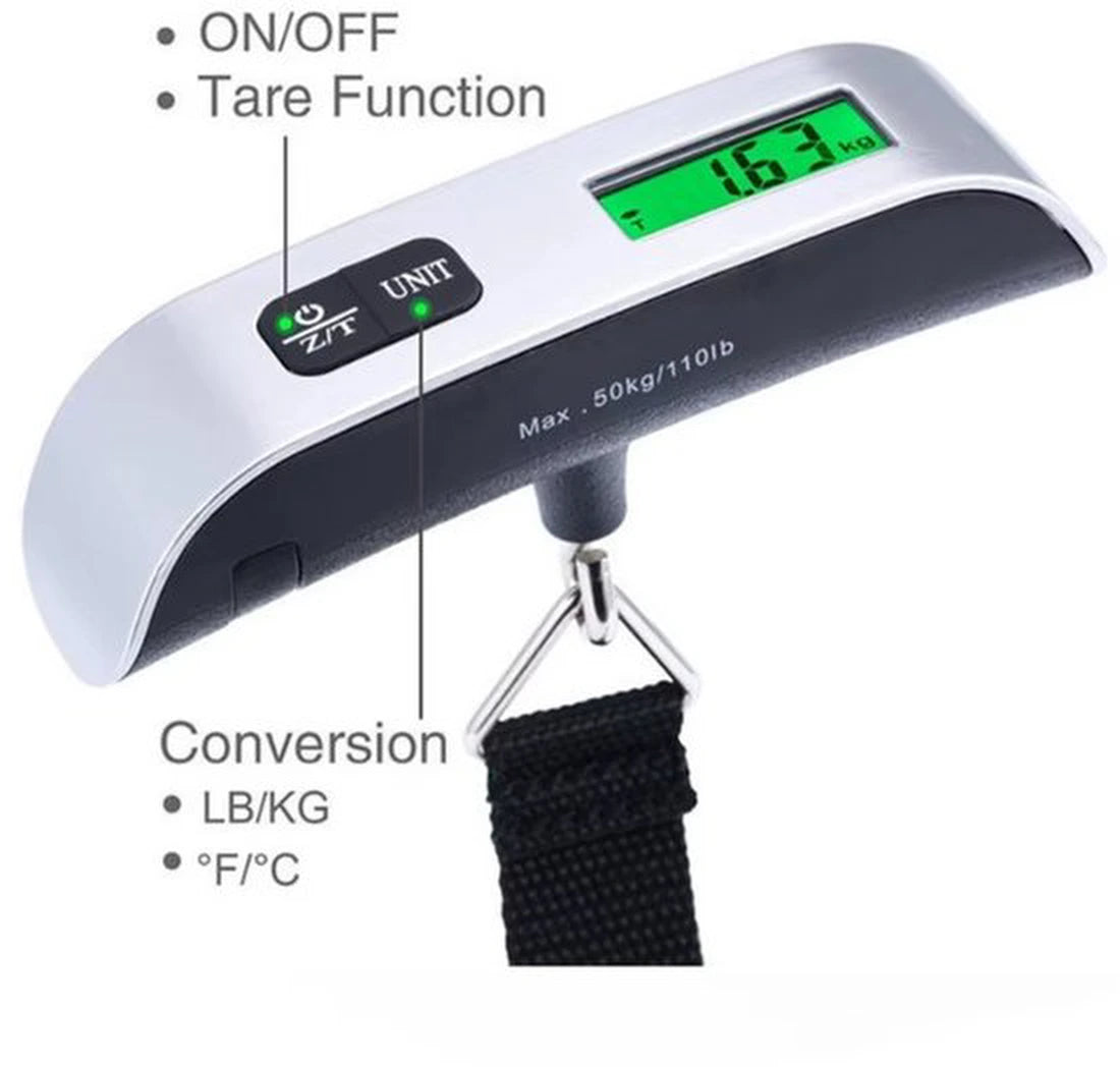 • 🧳 Hangende weegmethode met stevige bevestiging, ideaal voor bagage met handgrepen en pakketten met draaglus.
