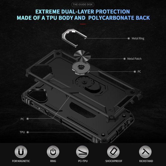 • Anti-Shock Hybrid Ring Armor backcover hoesje (zwart)