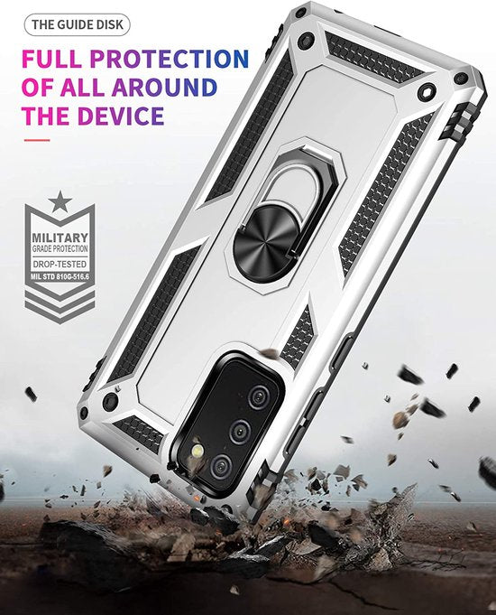 • Anti-Shock Hybrid Ring Armor Hoesje Geschikt voor: Samsung Galaxy A02S - zilver