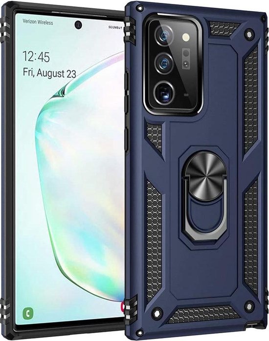 Anti-Shock Hybrid Ring Armor Hoesje Geschikt voor: Samsung Galaxy Note 20 - Blauw