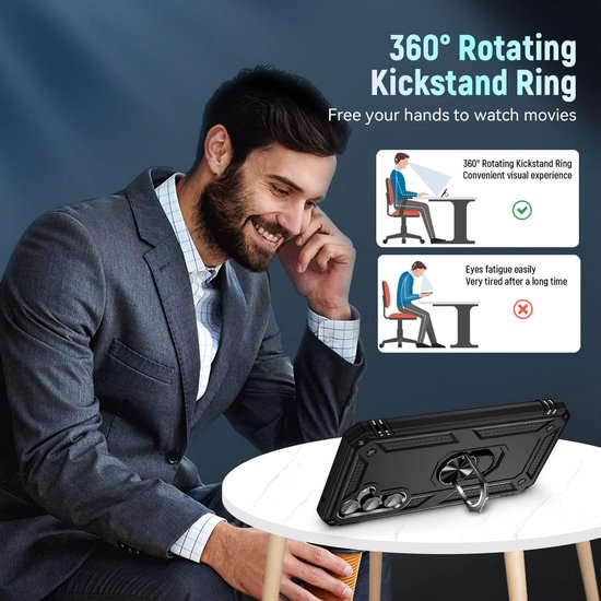 Strak, robuust en gemaakt voor dagelijks intensief gebruik: dit Anti-Shock Hybrid Ring Armor hoesje in zwart combineert een schokabsorberende constructie met extra grip en slimme functionaliteit. De hybride opbouw (flexibele binnenlaag + stevige buitenlaag) is ontworpen om impactenergie op te vangen en te verdelen, zodat je Samsung Galaxy S24 / Samsung Galaxy S25 beter beschermd is bij vallen, stoten en ruw gebruik op kantoor, onderweg of op de werkvloer.