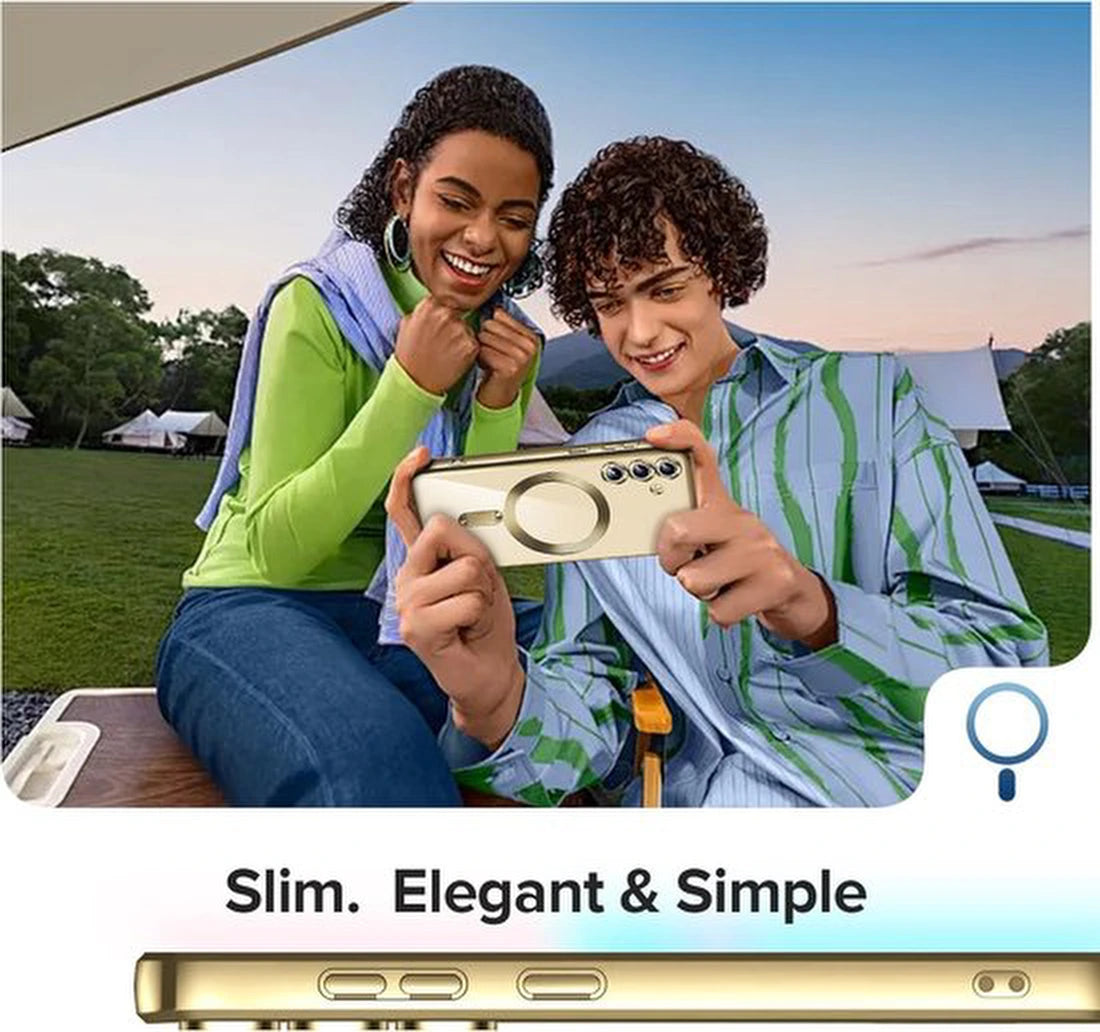 De goudkleurige afwerking geeft een duidelijke premium look, passend voor zowel dames als heren, en sluit goed aan bij zakelijke én casual settings. Alle essentiële uitsparingen en randen zijn ontworpen om de bediening van knoppen en poorten praktisch te houden, terwijl de randen extra grip geven voor een zekerder gevoel bij éénhandig gebruik.