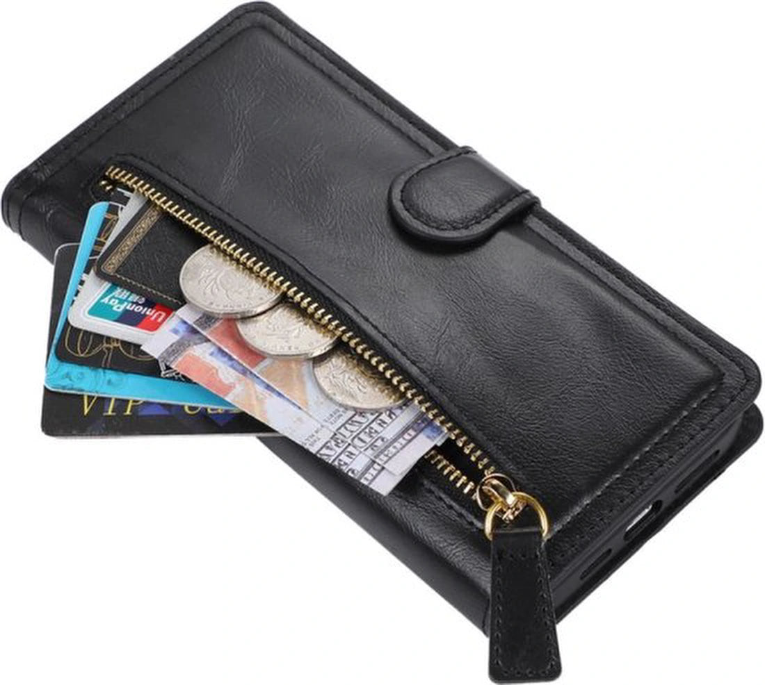 • Bookcase hoesje met ritssluiting voor Samsung Galaxy A05s (zwart)