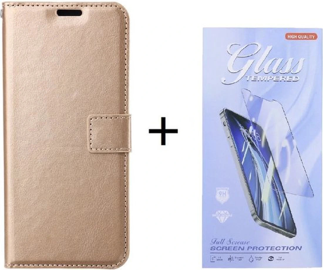 • Samsung Galaxy A06 Hoesjes – Bookcase Portemonnee Cover – Pasjeshouder – 2x Screenprotector – Goud