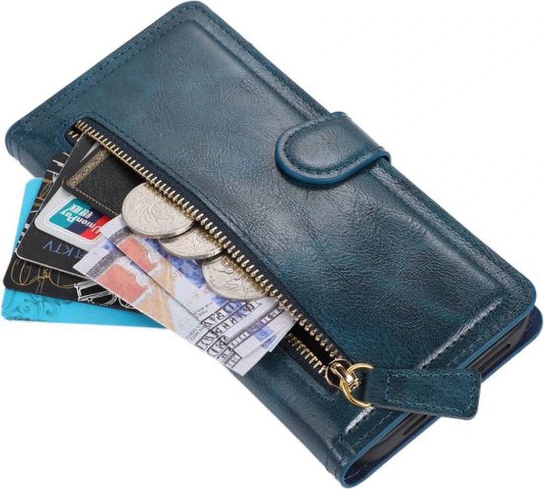 • Bookcase geschikt voor Samsung Galaxy A25 met ritssluiting (donkerblauw)