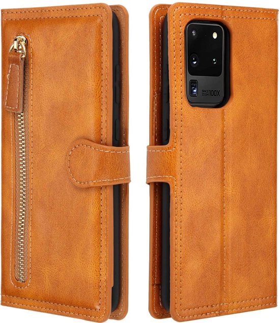 • Samsung Galaxy A52/A52s Hoesjes – Bookcase Portemonnee – Ritssluiting – 5 Pasjeshouder – Lichtbruin