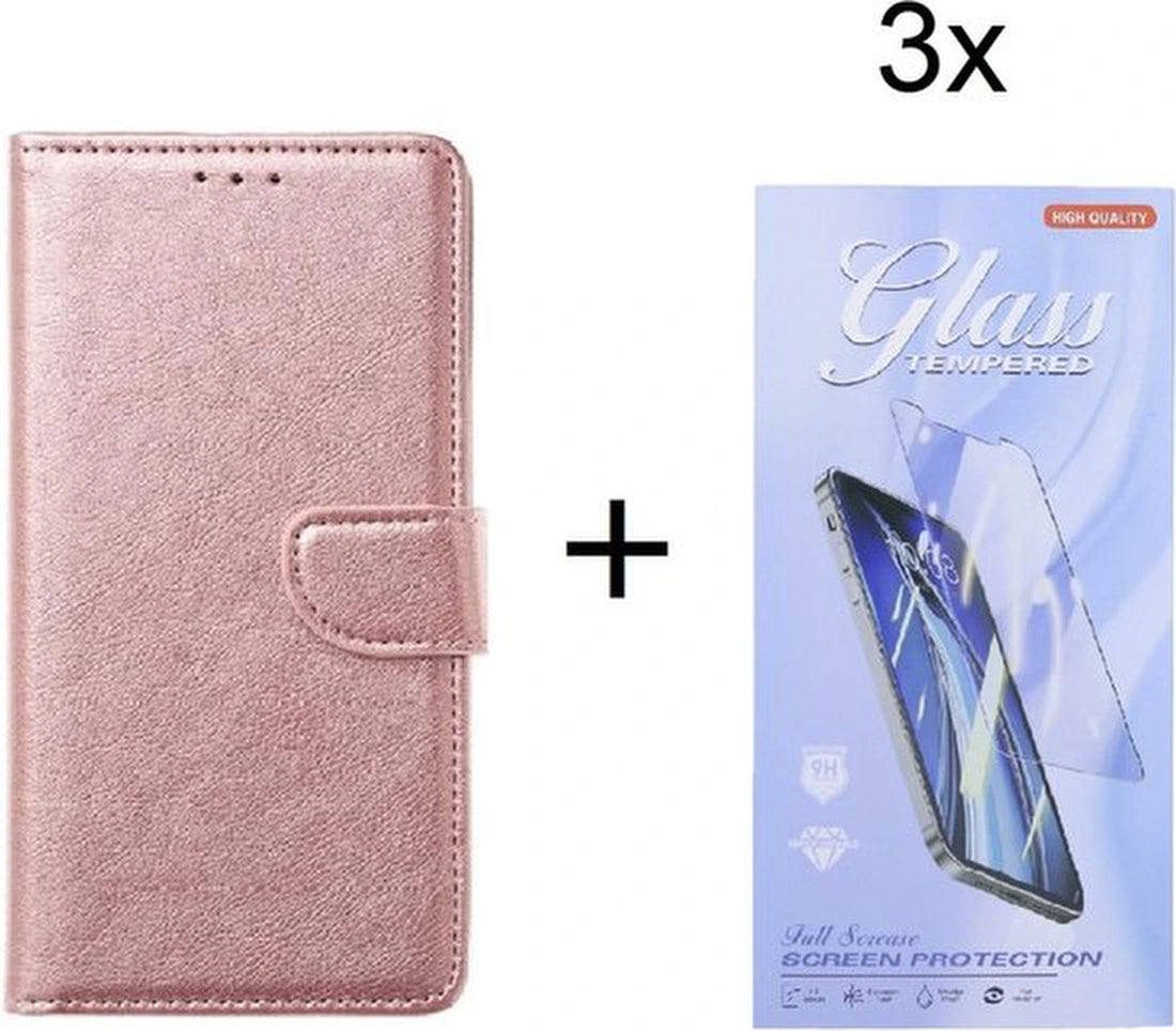 Samsung Galaxy A73 5G Hoesjes – Portemonnee Bookcase – Magneetsluiting – 3 Pasjes – Roségoud + 3x Gehard Glas Screenprotector