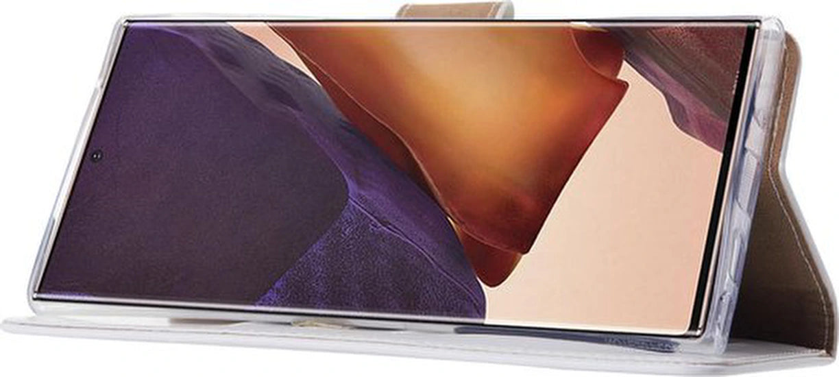 Een stijlvolle en functionele bookcase in wit, ontworpen voor de Samsung Galaxy Note 20 Ultra, die bescherming en efficiëntie combineert in één slimme oplossing. Dit portemonnee hoesje is ideaal voor professionals die hun smartphone intensief gebruiken en daarbij behoefte hebben aan betrouwbare bescherming, snelle toegang en minder losse items in broekzak of tas.