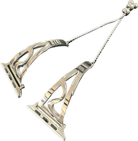De band is ontworpen voor Apple Watch in de gangbare kastformaten en biedt een strakke, zilveren afwerking die goed combineert met andere metalen accessoires zoals ringen, armbanden en horloges.