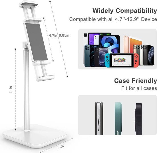 • 📏 Geschikt voor 4,7 tot 12,9 inch schermen, één standaard voor smartphone én tablet zonder gedoe