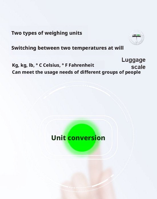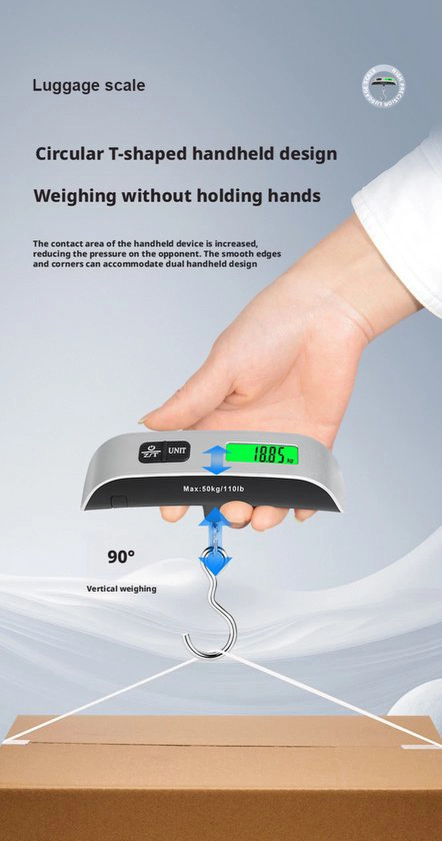 De weegschaal werkt als een compacte hangweegschaal: haak de koffer vast, til kort op en lees het gewicht direct af op het duidelijke digitale display. Dankzij de stabiele meting hoef je niet te “gokken” of meerdere keren te wegen. De stevige weeghaak geeft een veilige grip, ook bij zwaardere bagage, zodat je gecontroleerd kunt tillen zonder dat de tas wegglijdt.