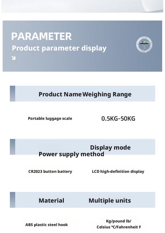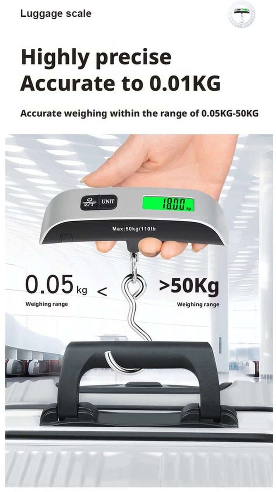 • 📏 Meetbereik tot 50 kg — weeg koffers en pakketten zonder marges of verrassingen bij het inchecken