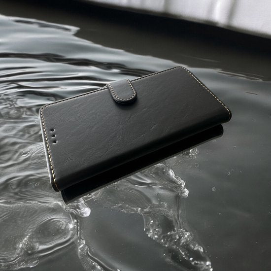 De bookcase sluit rondom af en bedekt zowel de voor- als achterkant van het toestel. Hierdoor blijft het display beter beschermd wanneer je je telefoon in een tas, jaszak of op een bureau legt. De kunstleren buitenzijde biedt een nette, representatieve uitstraling en voelt stevig aan, met extra grip zodat de kans op uit je hand glijden kleiner wordt.