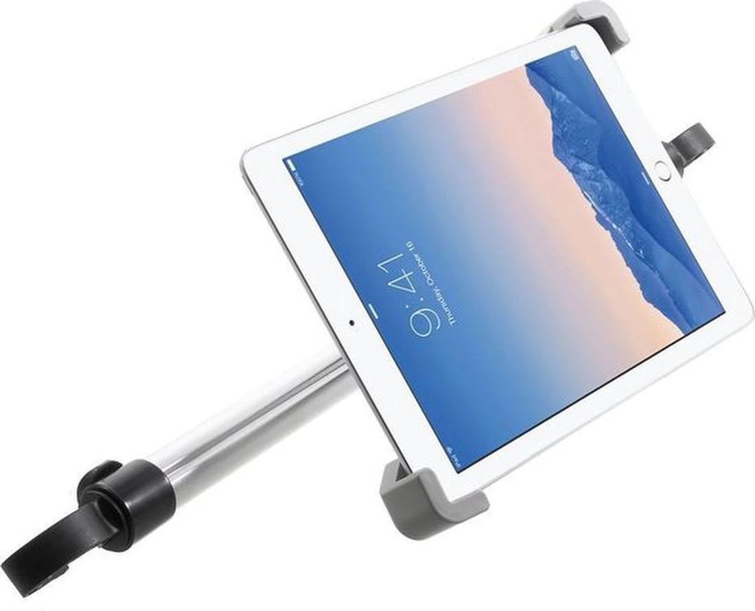 De universele tablethouder voor in de auto is ontworpen voor wie onderweg een stabiele, professionele kijkopstelling wil, zonder gedoe. Dankzij de stevige hoofdsteunklem monteer je de houder eenvoudig aan de stangen van de hoofdsteun, waardoor passagiers op de achterbank comfortabel kunnen kijken, werken of navigeren.