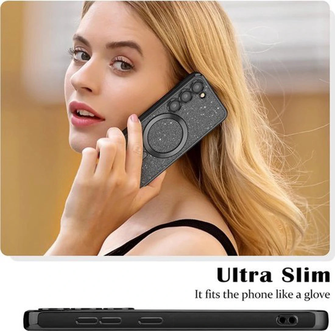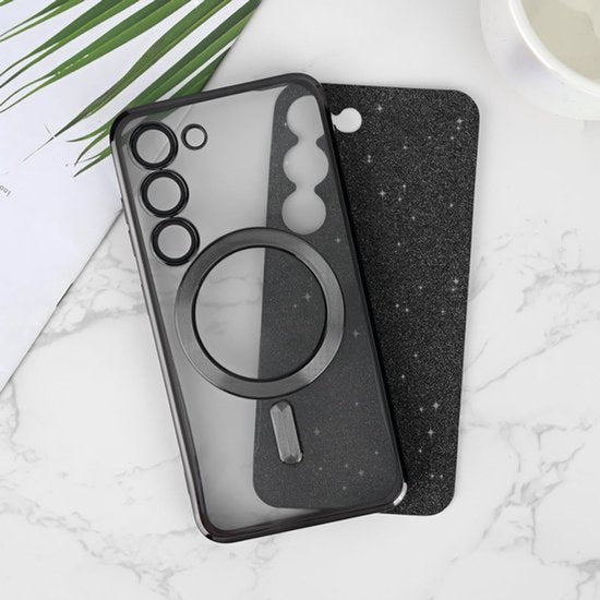 • Glitter Sequin Design Hoesje compatibel met MagSafe magnetische case voor Samsung Galaxy S22 (zwart)