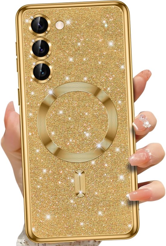 • Glitter Sequin Design Hoesje compatibel met MagSafe magnetische case voor Samsung Galaxy S23 (goud)