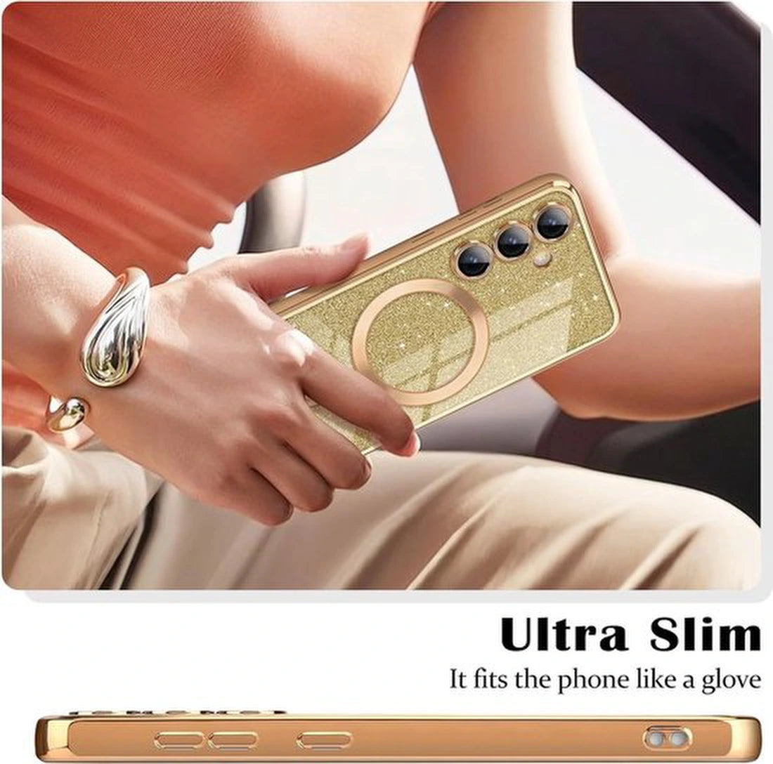 De Glitter Sequin Design Hoesje compatibel met MagSafe is ontworpen voor professionals die hun Samsung Galaxy S23 betrouwbaar willen beschermen, zonder in te leveren op uitstraling. De combinatie van een magnetische integratie en een zachte TPU-constructie zorgt voor een prettige balans tussen grip, schokabsorptie en dagelijks gebruiksgemak, met een opvallende gouden sequin-glitter afwerking die direct premium aanvoelt.