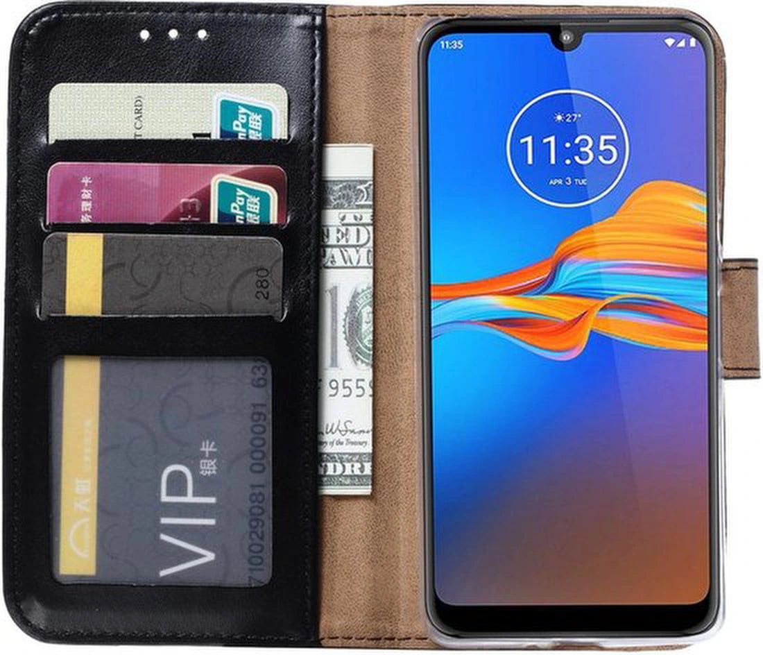 • 1x Portemonneehoesje zwart geschikt voor Motorola Moto E6 Plus