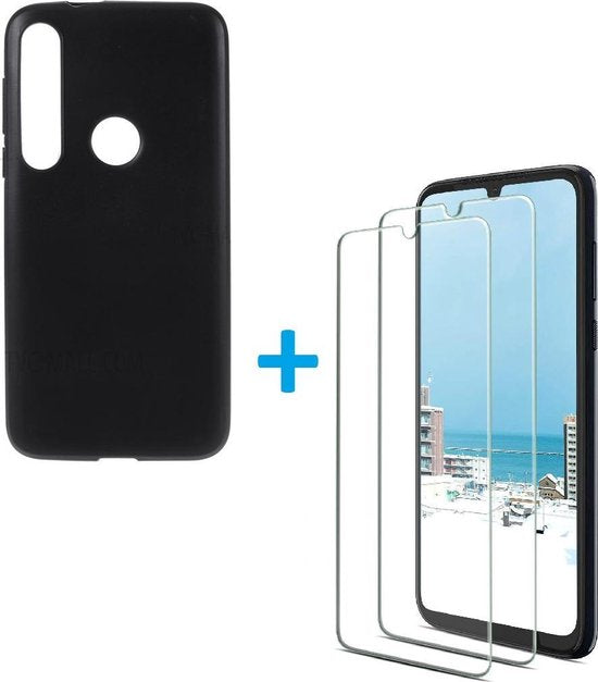 Motorola Moto G8 Plus Hoesjes – Soft TPU Siliconen Backcover – Inclusief 2x Screenprotector – Zwart