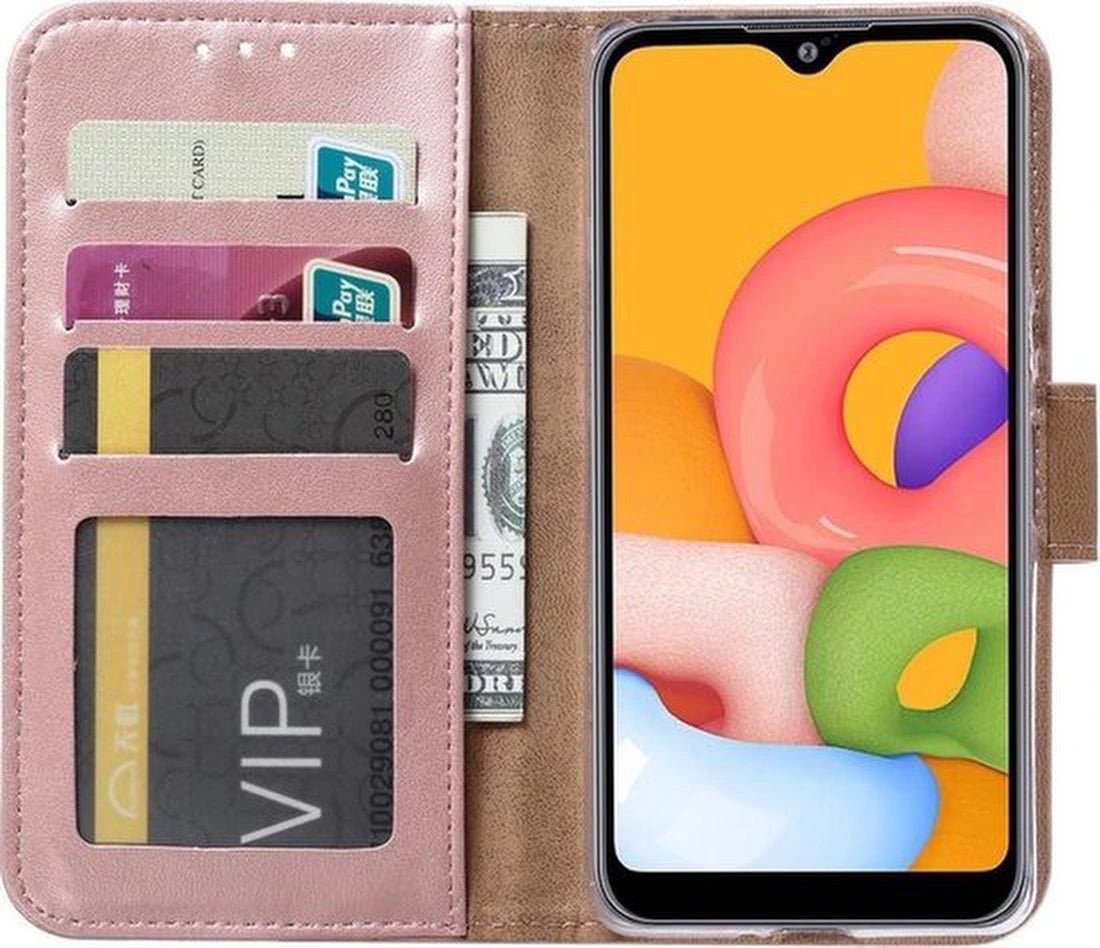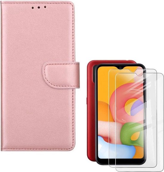 • Samsung Galaxy M10 Hoesjes – Portemonnee Hoes – Pasjeshouder – 2x Gehard Glas Screenprotector – Roségoud