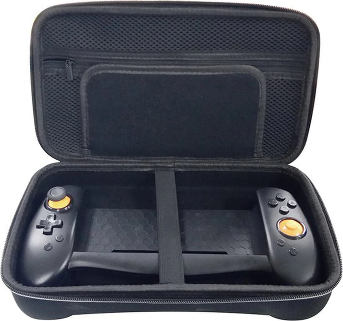 Ook praktisch: de oplaadfunctie houdt je setup klaar voor gebruik zonder gedoe. Je wisselt niet steeds van grip of accessoires; je speelt en laadt simpelweg door wanneer dat nodig is. De meegeleverde hoes/opbergtas beschermt je controller-grip en accessoires tegen stof, krassen en stoten, handig voor onderweg, in de lade of in je gamebag.