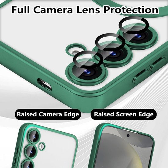 • Samsung Galaxy S24 Hoesjes – Transparante Siliconen Backcover – MagSafe Magnetische Ring – Camera Lens Protector – Groen