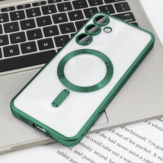 Samsung Galaxy S24 Hoesjes – Transparante Siliconen Backcover – MagSafe Magnetische Ring – Camera Lens Protector – Groen