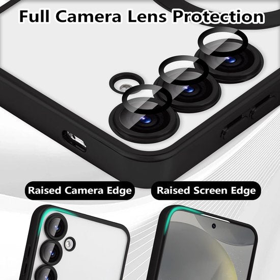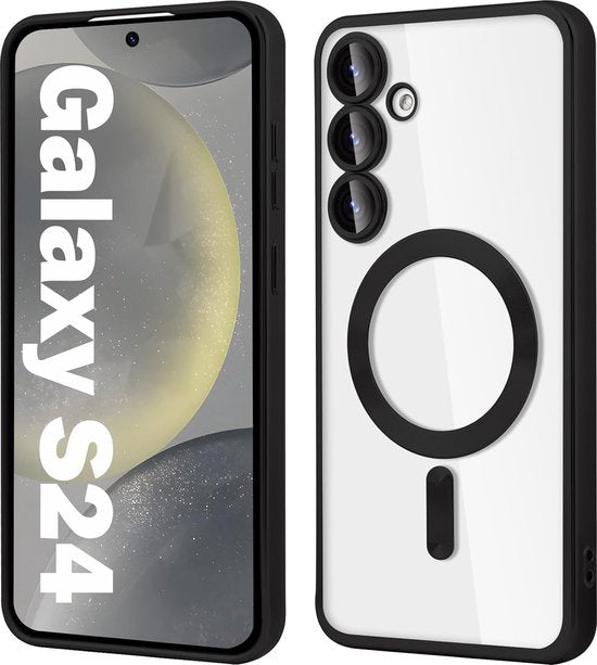 Samsung Galaxy S24 Hoesjes – Magnetische Magsafe Ring – Transparant Silicone Backcover – Camera Lens Protector – Zwart