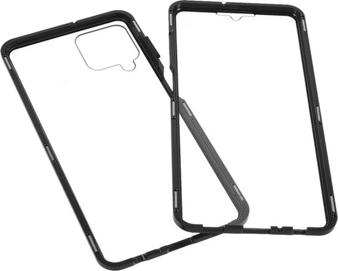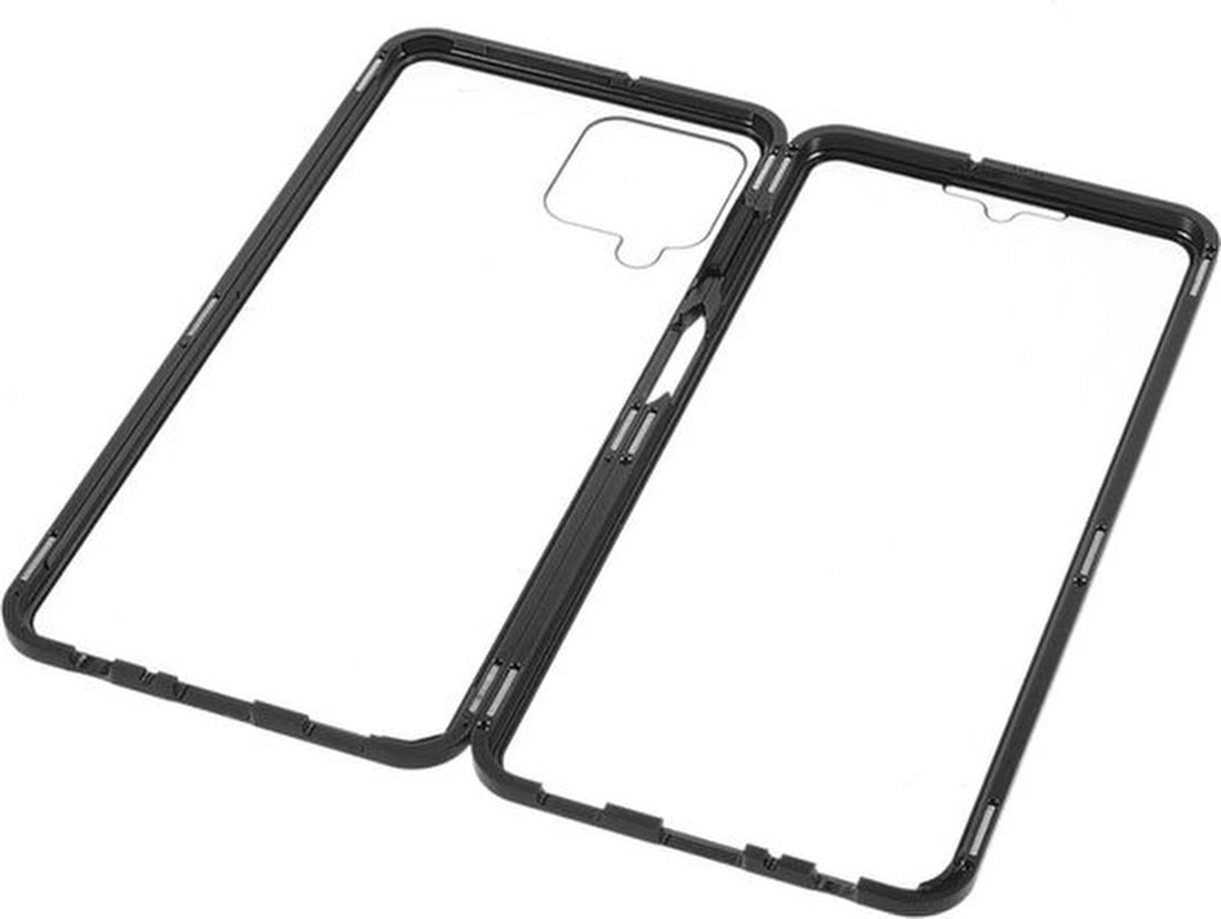 Samsung Galaxy A22 4G Hoesjes – Magnetische 360° Bescherming – Metalen Frame – Gehard Glas Achterkant + Screenprotector – Zwart