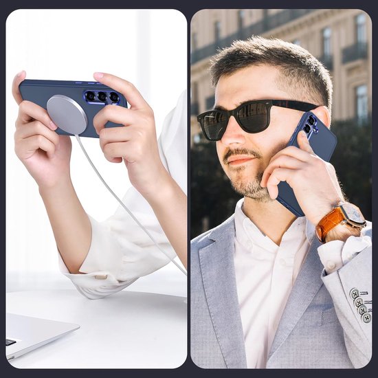 Een strakke, professionele look én betrouwbare bescherming voor je smartphone: deze matte magnetische hoes voor Samsung Galaxy S25 Plus combineert een minimalistisch design met slimme MagSafe-compatibele magneten. De matte blauwe achterkant geeft een moderne uitstraling, vermindert reflecties en blijft er netjes uitzien, ook bij intensief dagelijks gebruik.