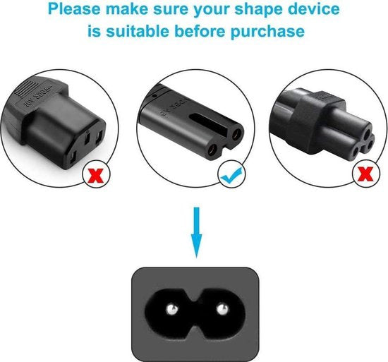 • 🔌 2-polige stekker naar C7 (figuur-8) voor compatibele apparatuur