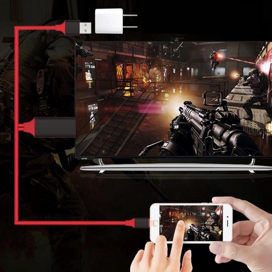 • OTN-7575S Lightning naar HDMI Kabel HDTV Adapter 2m – Rood