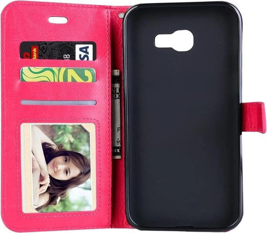 Portemonnee Hoesje - 2 Pack Screenprotector Geschikt voor: Samsung Galaxy A3 (2017) - Roze