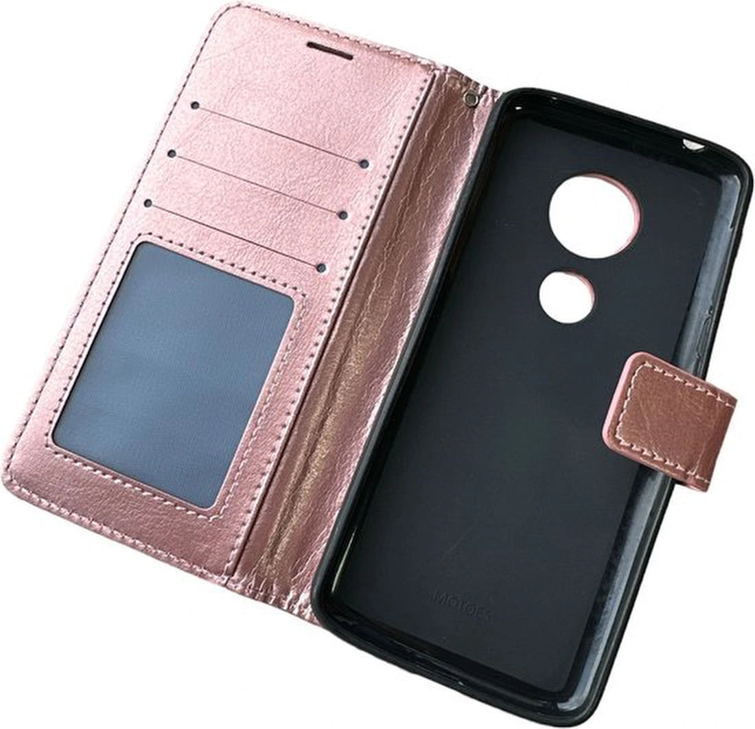 Motorola Moto E5 & G6 Play Hoesjes – Portemonnee Bookcase – Pasjeshouder – Magneetsluiting – Roségoud