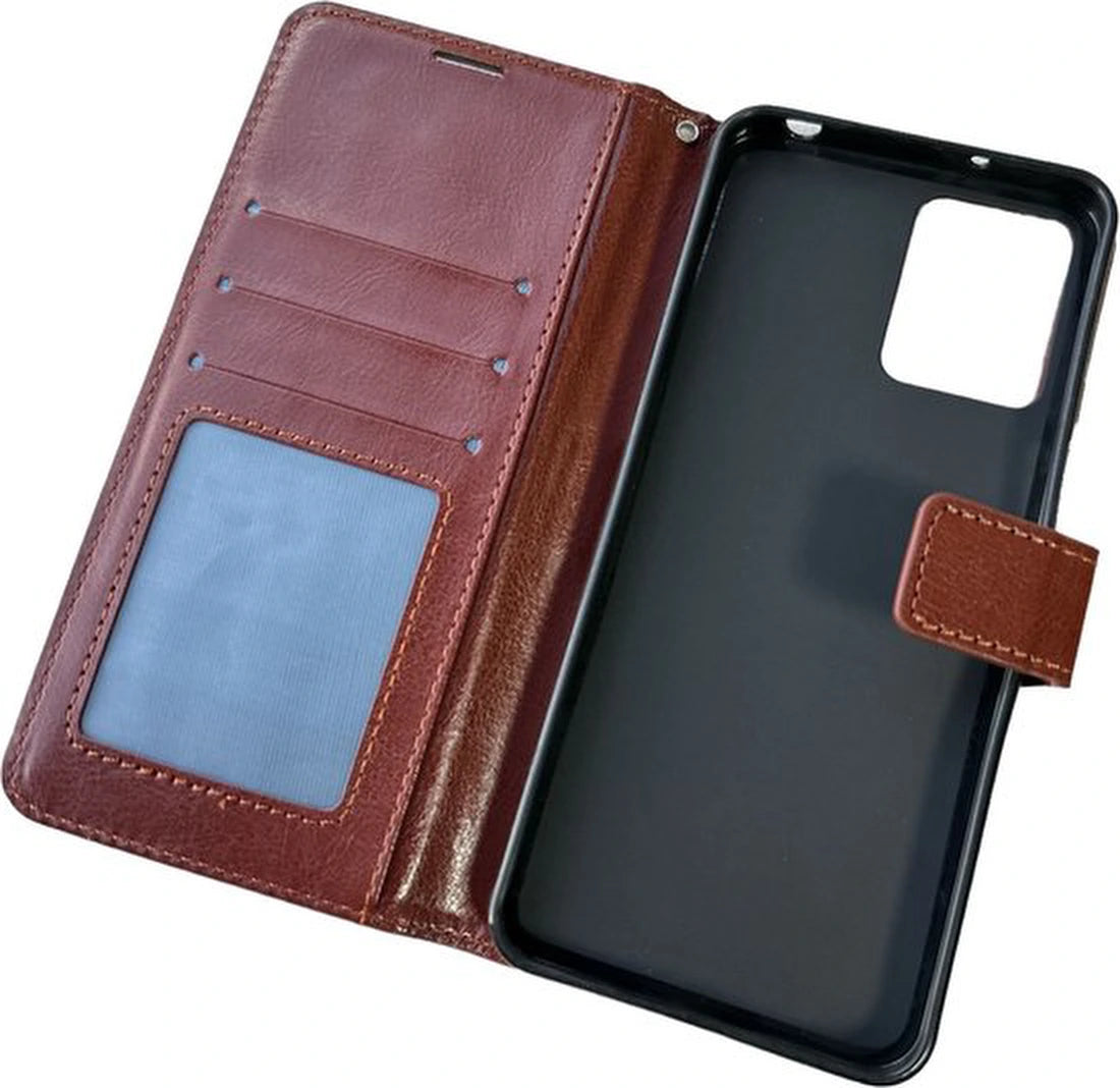 Motorola Moto G23 Hoesjes – Portemonnee Bookcase – Pasjeshouder – Magneetsluiting – Bruin