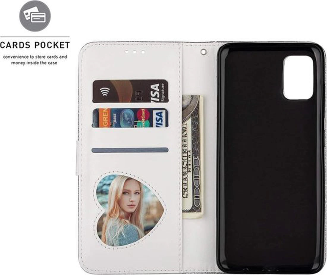 De zilverkleurige glitterfinish geeft het hoesje een premium uitstraling zonder in te leveren op gebruiksgemak. Alle belangrijke functies blijven goed bereikbaar, zodat je je toestel normaal kunt bedienen terwijl het hoesje optimale bescherming en organisatie biedt.