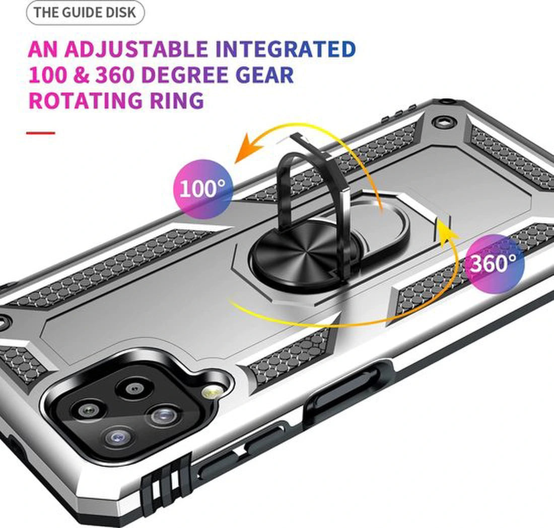 • Samsung Galaxy A22 4G Hoesjes – Ring Armor Backcover – 360° Draaibare Standaard – Magneet – Zilver