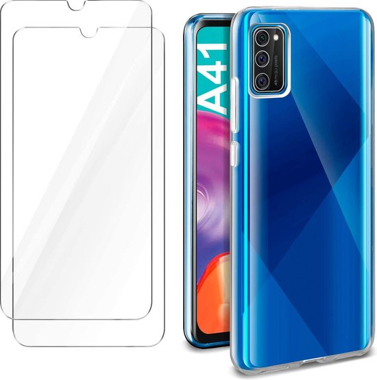 Samsung Galaxy A41 Hoesjes – TPU Siliconen Backcover + 2x Screenprotector Gehard Glas – Anti-kras – Transparant