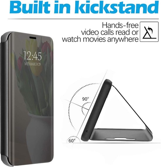 • Spiegel Cover / Clear View Case geschikt voor Samsung Galaxy Note 10 – Zwart