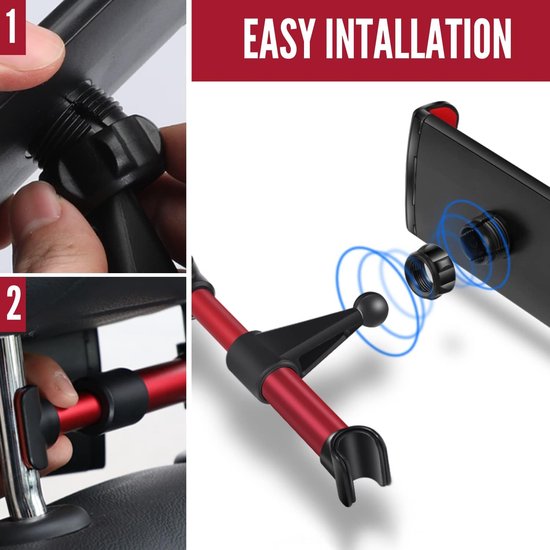 • Tablethouder auto – Hoofdsteunhouder voor kinderen – Geschikt voor iPad/iPhone/Samsung Galaxy Tab – Verstelbaar – Rood