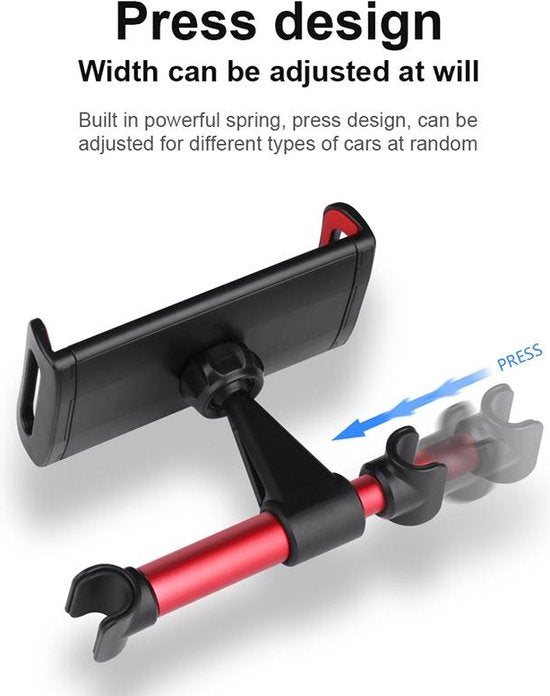 Dankzij het universele klemsysteem is de houder ontworpen voor een breed scala aan apparaten, van smartphones tot tablets en handheld consoles. De constructie is gericht op solide ondersteuning: een stevige klem houdt het apparaat stabiel, terwijl de bevestiging aan de hoofdsteun bedoeld is om trillingen en kleine schokken tijdens het rijden te dempen. Zo blijft het scherm beter leesbaar, en wordt onnodig gefriemel door passagiers verminderd.