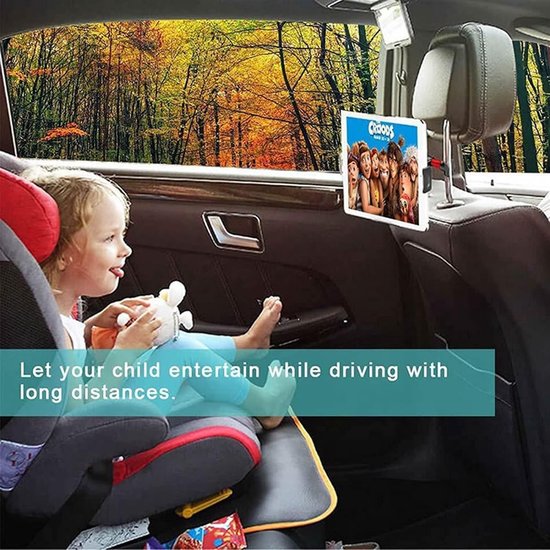 Zorg voor rust op de achterbank en een veiligere rit met deze tablet houder voor de hoofdsteun. De verstelbare arm positioneert je tablet of telefoon precies op ooghoogte, zodat passagiers comfortabel kunnen kijken zonder het scherm vast te houden. Ideaal voor lange autoritten, woon-werkverkeer met kinderen achterin, taxi- en ridesharegebruik, of zakelijke roadshows waarbij je content wilt tonen op de achterbank.