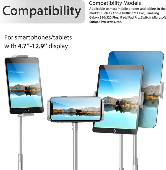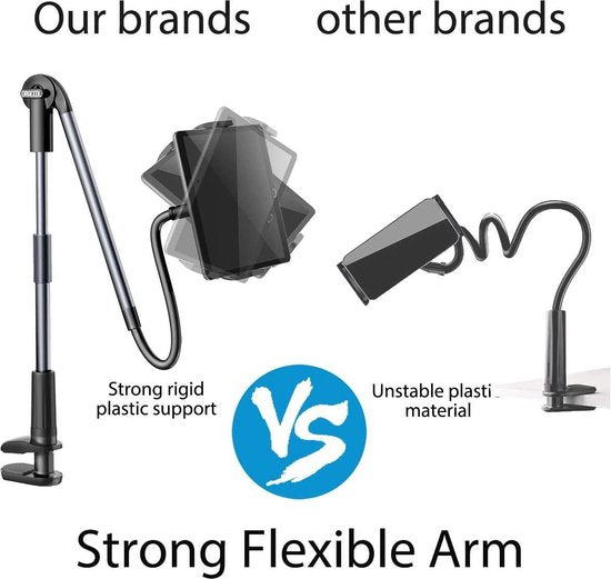 Ervaar handsfree comfort en maximale flexibiliteit met deze tablethouder met lange arm en zwanenhals. Ontworpen voor dagelijks intensief gebruik op het nachtkastje, bureau, tafel of aan het bed, zodat je altijd de perfecte kijkhoek hebt zonder je tablet vast te houden. Ideaal voor professioneel werken, videobellen, lezen, studeren, koken met recepten, of ontspannen streamen.