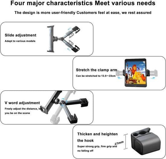 • Tablethouder auto – Achterbank Hoofdsteun Houder – Verstelbaar – 4,4-11 inch Tablets – Zwart