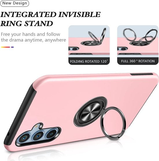 • Telefoonhoesje met Vingerring - Hoesje Geschikt voor: Samsung Galaxy A25 4G & 5G - Anti-drop harde cover - Roze