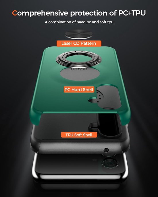 Strak, functioneel en gebouwd om dagelijks gebruik aan te kunnen: dit zwarte telefoonhoesje met vingerring voor de Samsung Galaxy A25 4G & 5G combineert een harde anti-drop bescherming met extra grip en controle. De stevige hardcase-constructie helpt impact bij vallen te absorberen en houdt de achterkant en randen beter beschermd tegen stoten, krassen en slijtage door intensief gebruik.