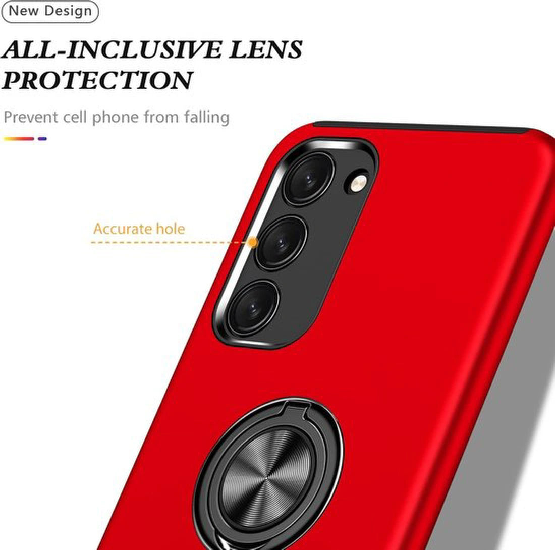• Telefoonhoesje met Vingerring - Hoesje Geschikt voor: Samsung Galaxy S23 Plus - Anti-drop harde cover - Rood