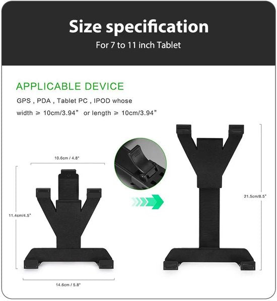 • 🗜️ Klem voor 7" tot 11" apparaten, brede inzetbaarheid voor tablets en grote smartphones