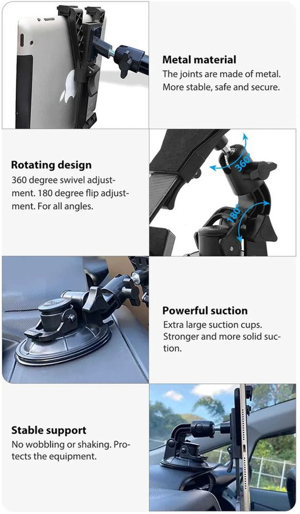 Tablethouder auto – 360° draaibaar voorruit & dashboard – Voor 7-11 inch tablets en grote smartphones – Zwart