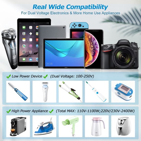 • 🔌 Universele reisstekker voor 150+ landen, één adapter voor vrijwel alle bestemmingen